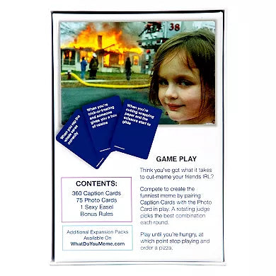 - Each What Do You Meme core game contains 435 cards (360 caption cards, 75 photo cards), easel, and bonus rules