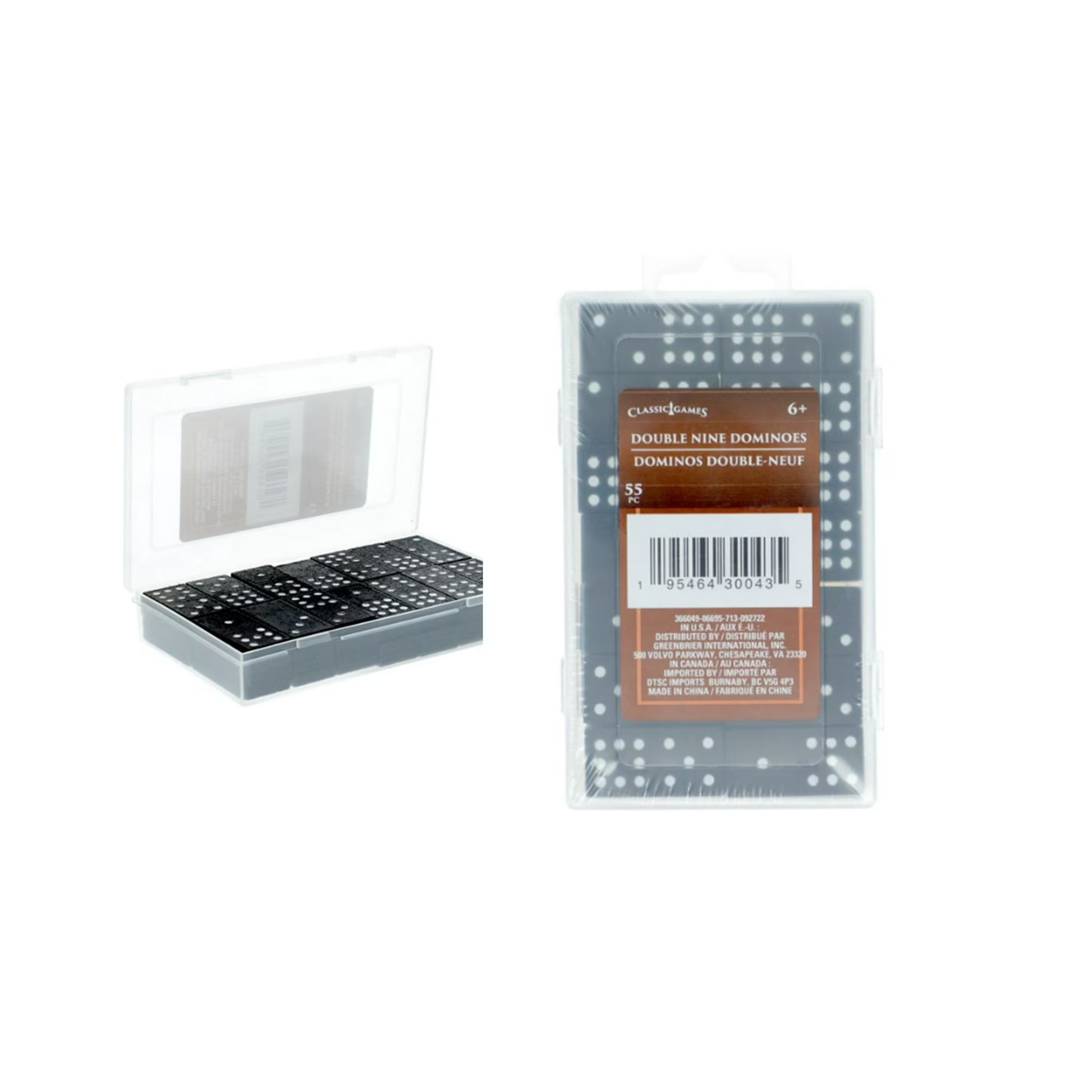 Get a rousing game of Dominoes on with this Double Nine Dominoes Set. Each set includes 55 black and white double nine dominoes. Set comes in a plastic case for storing dominoes when not in use. Perfect for game nights, keeping at rental properties, playing at barbecues, and more!
