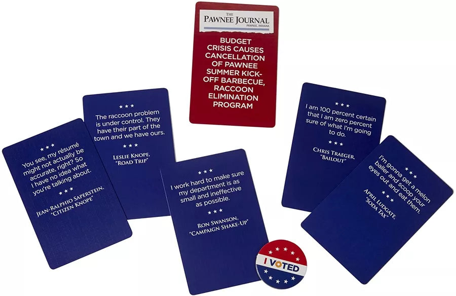 PARTY GAME: Fans of Parks and Rec will love this party game about the pitfalls of politics. It captures the essence of the show's quirky characters and scenarios.